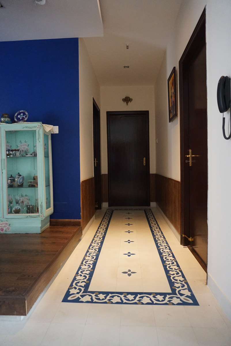 Flower Design in this Delhi home completes a carpet look with vine border