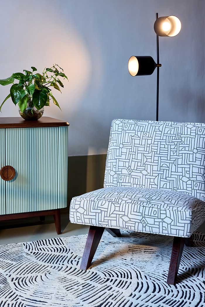 Play of thickness, orientation, and the texture of lines. Organic shapes are in potential shape for the rugs. Interaction of the different patterns.